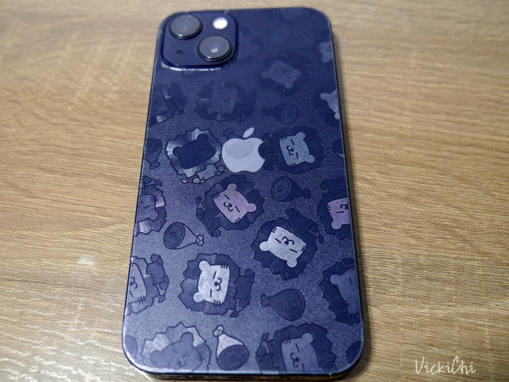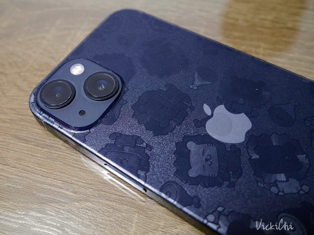 包膜完的iPhone13,鏡貼、轉彎處都很滑順服貼,接縫隱藏的非常好,充滿活力獅子的裸機感,超級可愛的,還是可以看到手機背面的Apple Logo。貼了汎金盾保護貼的手機,好滑又順手,不沾指紋好擦拭。
