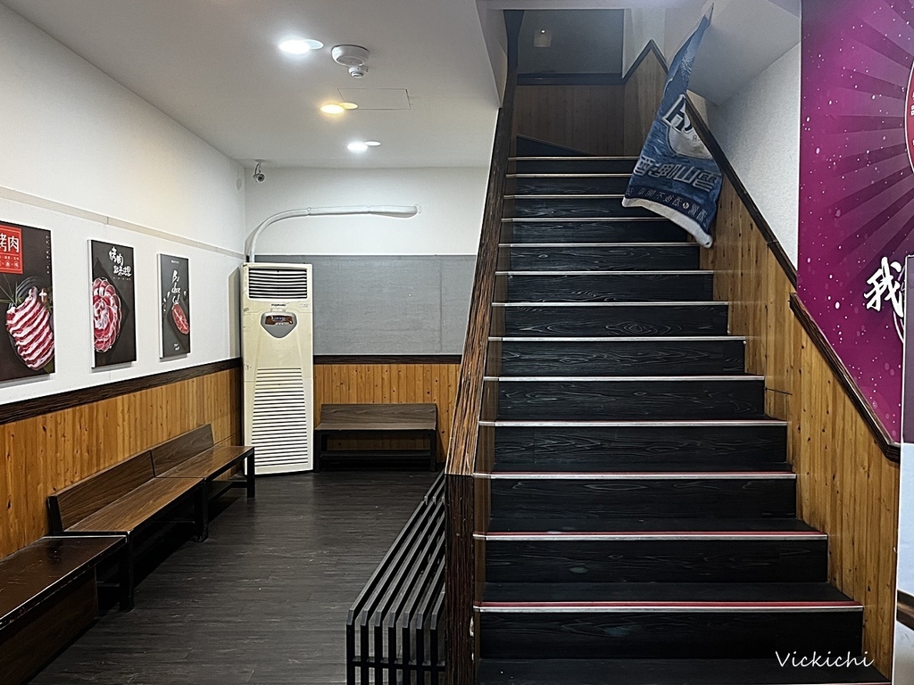 燒烤店的櫃台和用餐空間在2、3樓,走上二樓,立刻感受到那股誘人的烤肉香氣,店內的裝潢簡潔大方,創造出一個舒適的用餐環境,忍不住想趕快享受燒烤的美味。