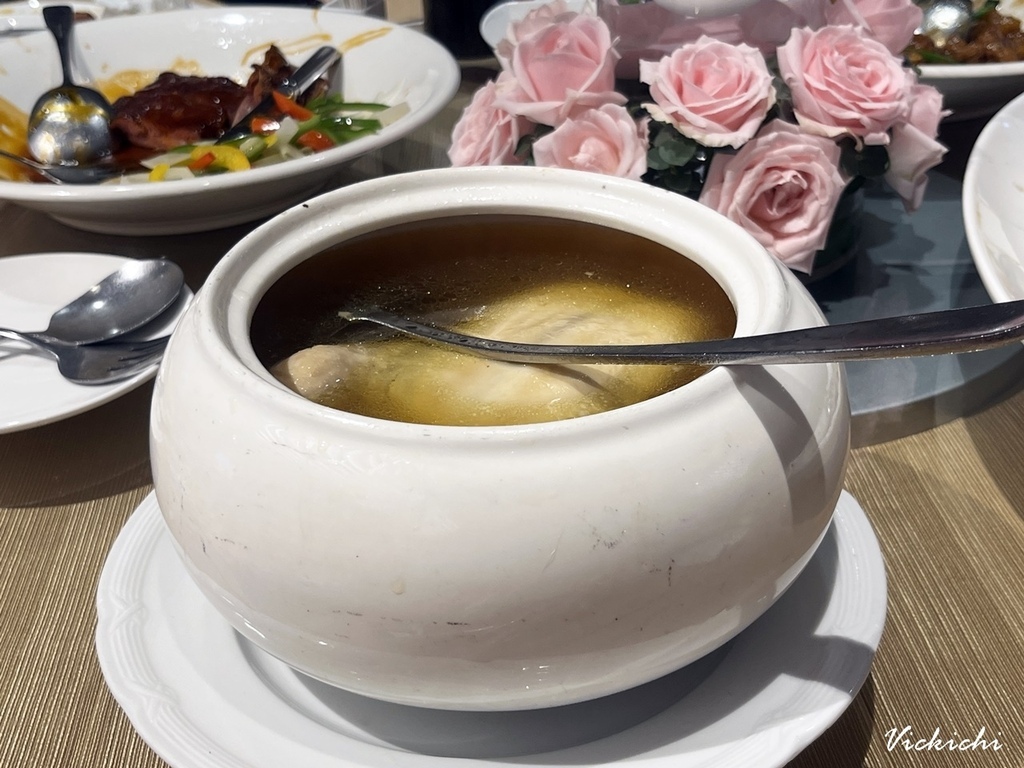 沒想到還有雞湯!!!湯喝起來不油膩,雞肉吃起來不會乾柴。