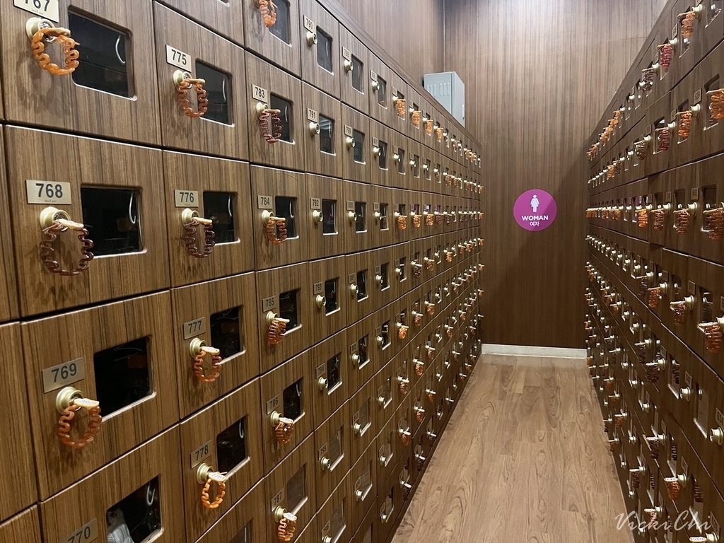 進去之後,男女生的澡湯是分開的。一樣去找相同號碼的衣櫃,接著就是全身脫光光,把外套、衣服及包包所有東西都放進去置物櫃裡面,汗蒸幕的更衣室和浴池禁止拍照、攝影,把手機跟相機鎖在更衣室的櫃子,畢竟大家都是肉身相待(羞)。