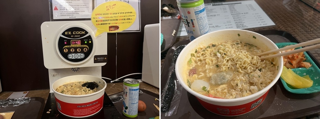 原本以為自己很會煮泡麵,沒想到第一次操作泡麵機就立刻把泡麵碗煮到燒焦...,煮到第三次才成功。