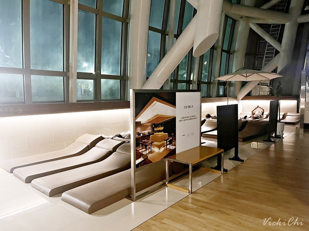 Spa Land提供了很多不同的休息空間,躺在躺椅上,白天可以享受穿透透明建築灑下的陽光,不過晚上只有月光。躺著躺著就很容易睡著~
