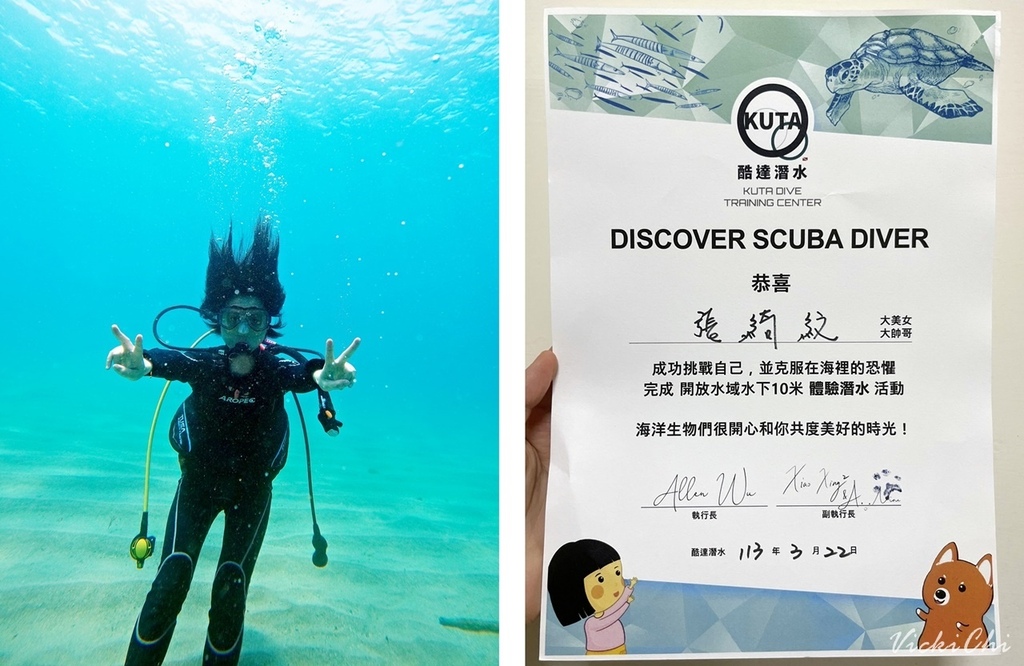 我非常喜歡酷達潛水中心的教練,超級有耐心的,在我覺得潛不下去而感到焦慮時,不斷地鼓勵我,終於順利潛入水底,看到很多可愛的小魚和珊瑚礁。我還在海底嘗試著漫步,那種感覺至今,令我難以忘懷。