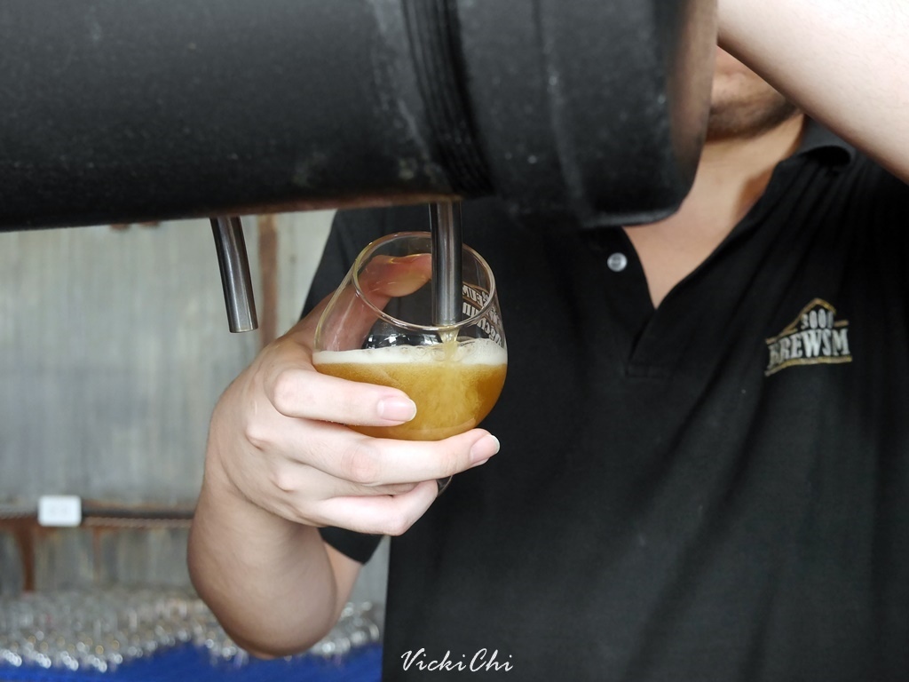 正當糾結到底要點哪一杯啤酒?那就都是試試看每一款啤酒的味道。看著男店員熟練地為我倒入啤酒,喝過風火水土四款啤酒,最後點了南灣啤酒。