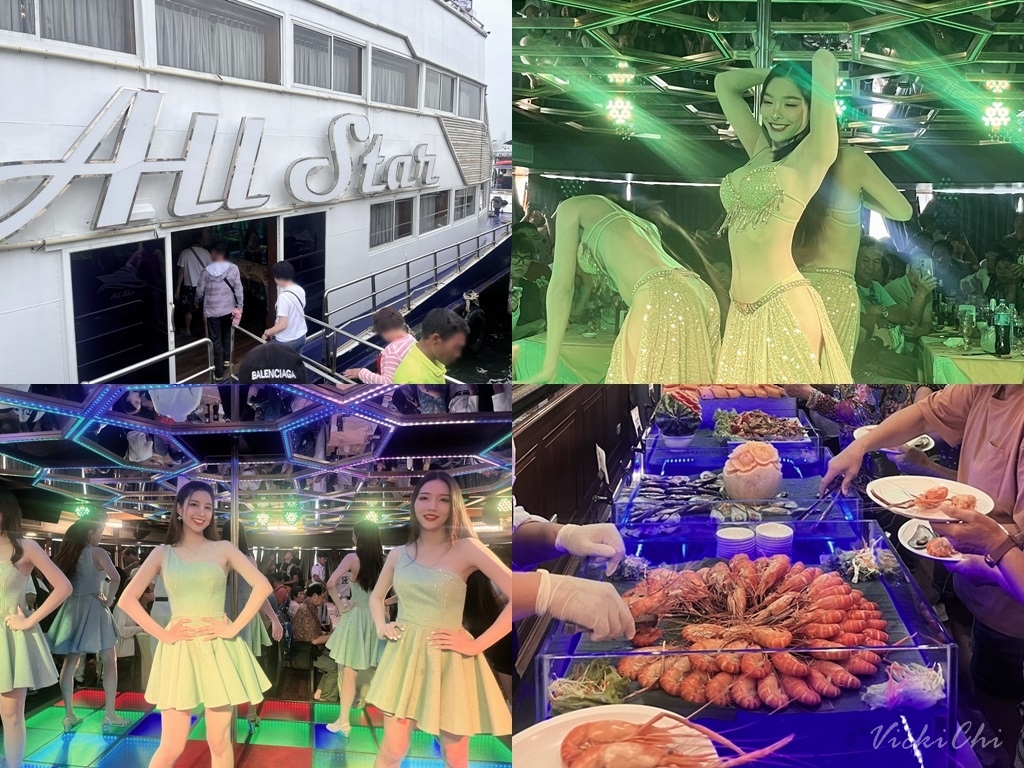泰國芭塔雅的人妖秀是非常熱門的表演,這次在芭塔雅就看了兩場截然不同的人妖秀表演。跟著旅行團搭上All Star全明星號遊輪,直接在郵輪上邊看精彩的人妖秀,還有自助式的海鮮總匯吃到飽跟可樂、啤酒喝到飽,簡直是在海上過了一餐酒食肉林的晚餐時刻。