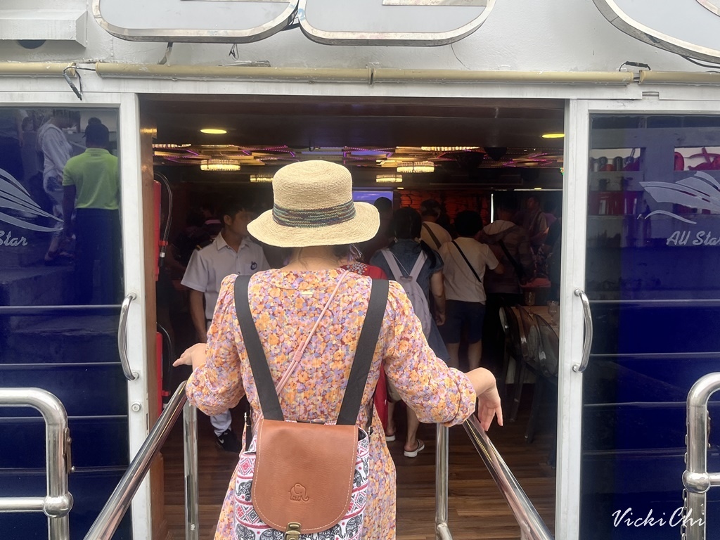 郵輪有三層樓,看起來很棒!我們在第一層,跟著團員一起走進去,很期待待會的海鮮總匯吃到飽跟人妖秀表演。