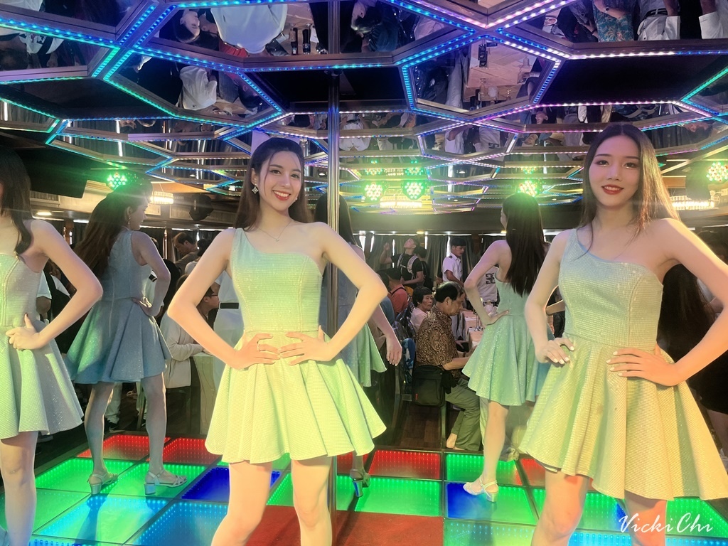 一進入遊輪,看到有6位漂亮的人妖在舞台上跳舞迎接客人,每個都好漂亮喔!