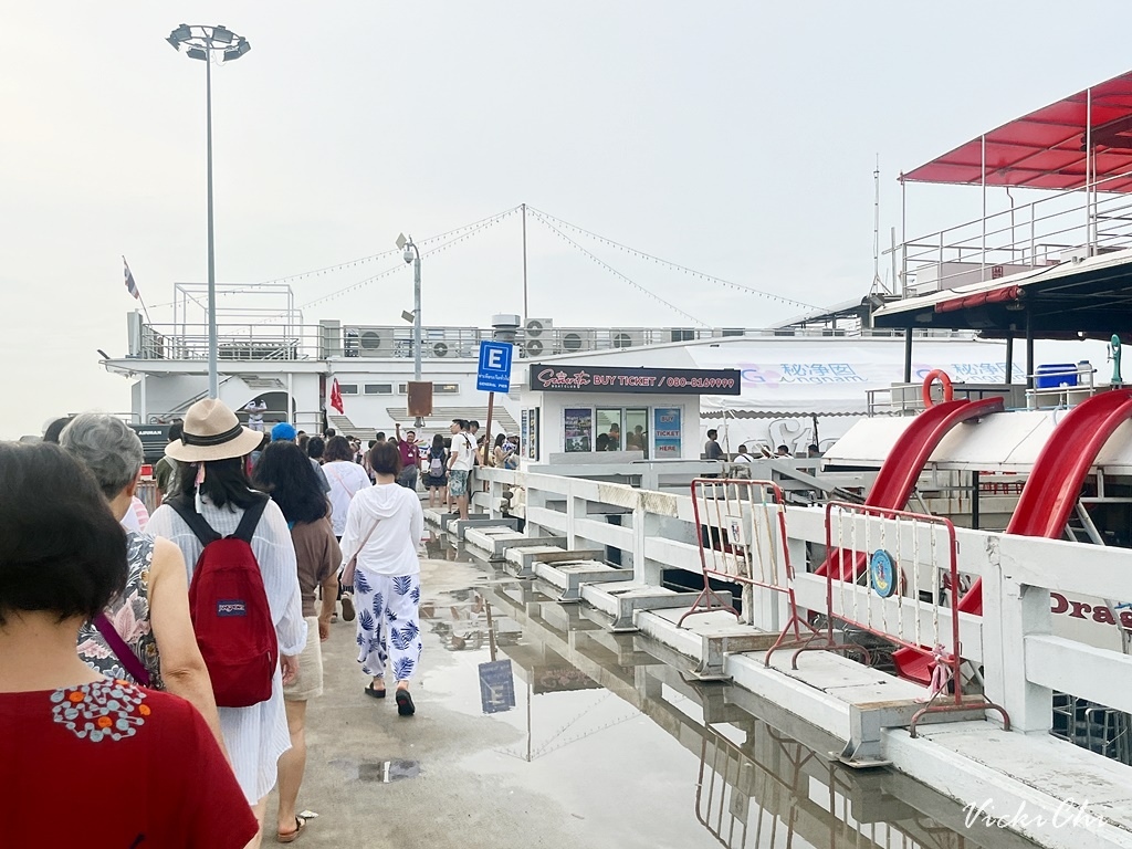 一抵達碼頭,下車就看到Pattaya的地標,由於我們這次搭乘All Star是晚上6:30的場次,時間有點急迫,大家顧不得跟地標合照,只好趕快到碼頭排隊搭郵輪吃晚餐。