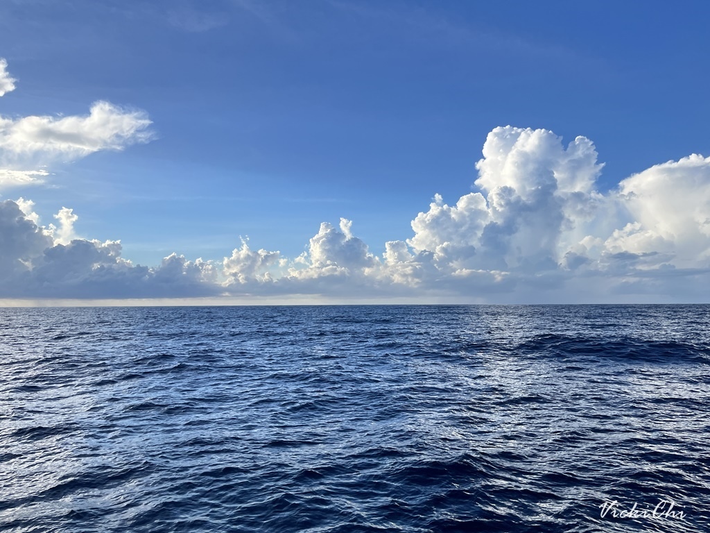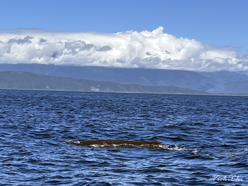 兩小時的海上行程,看著白雲就像拼貼的感覺貼在天空,還有海豚出現在海面上,覺得很不可思議。第二次參加賞鯨行程,意外看到難得的抹香鯨,看到的當下超級興奮的!