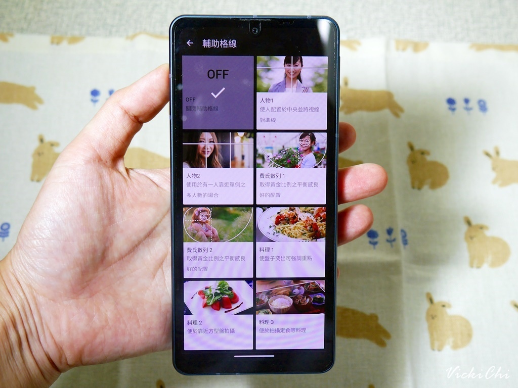 我最喜歡的功能還有就是輔助格線,手機已經設定不同拍照需求設計了很多輔助格線,以後到外面請人家拍照又更容易了!