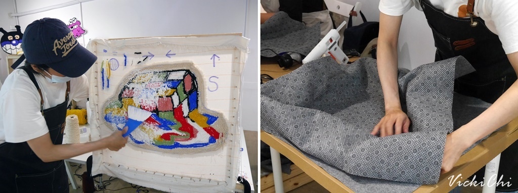 我一直以為地毯是可以使用的,後來才知道原來我做的地毯是不吸水的,所以是無法像一般地毯使用,哈哈哈。老師邊把我的作品放入袋中邊提醒我,如果地毯髒掉就用濕紙巾稍微擦拭即可。