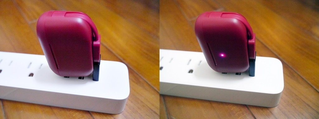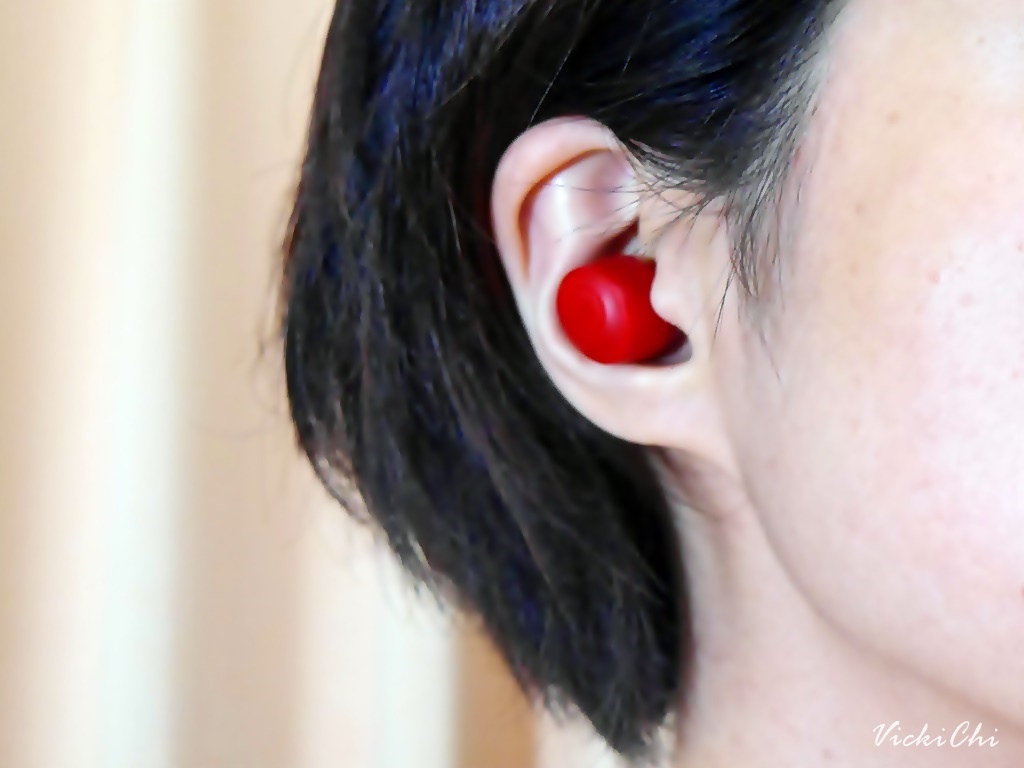 JLab Go POP+推出孔雀綠、愛麗絲藍、丁香紫、櫻桃紅和午夜黑5種顏色。這次選櫻桃紅,耳機重量34.5公克,拿在手中非常薄小輕巧,放在口袋或是小包方便隨身攜帶。