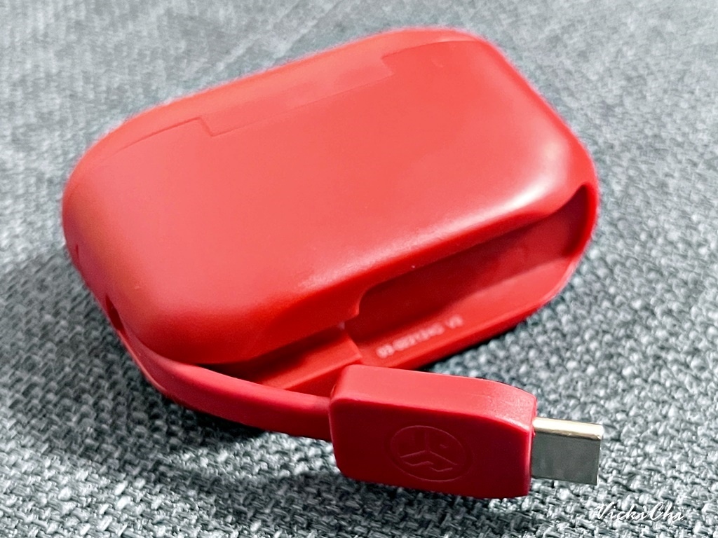 JLab Go POP+充電盒底部凹槽內有內建Type-C充電線,出門不用另外帶充電線。
