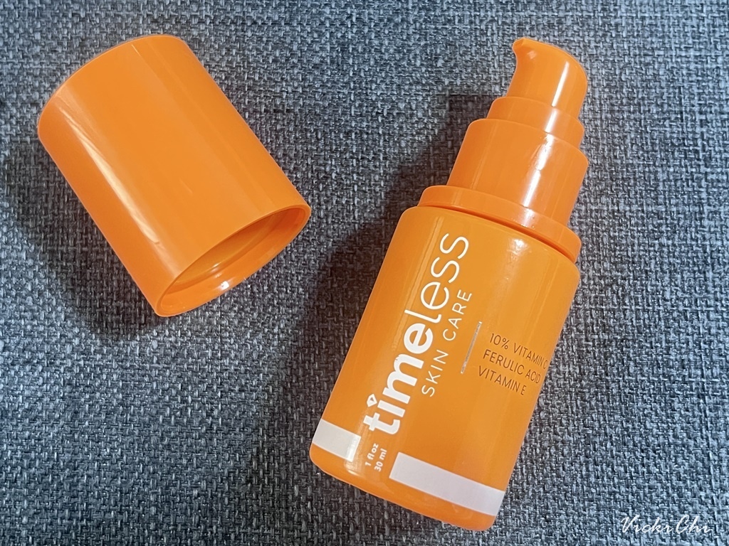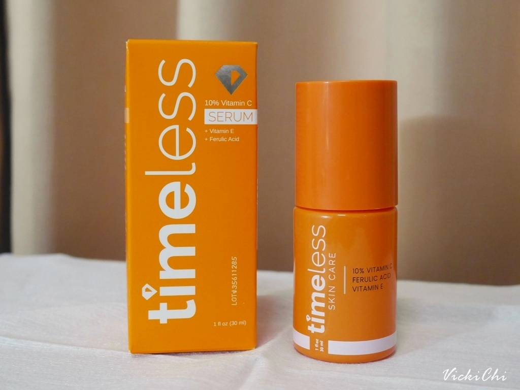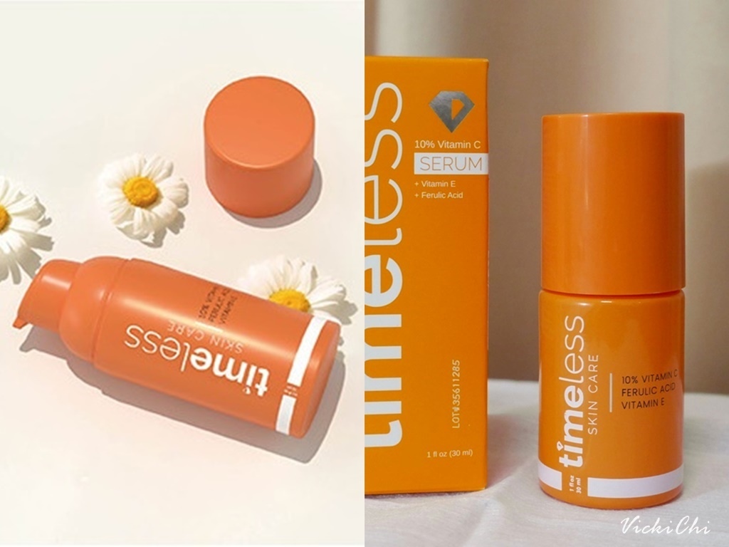 Timeless SKIN CARE時光永恆推出維C煥白複合精華,精華液主打10%溫和濃度維他命C,還加入用於延長維他命C效用的維他命E、維他命B5、阿魏酸及透明質酸等,可以強化肌膚保護、改善暗沉、提亮膚色等讓肌膚變的亮白、均勻且有光澤。