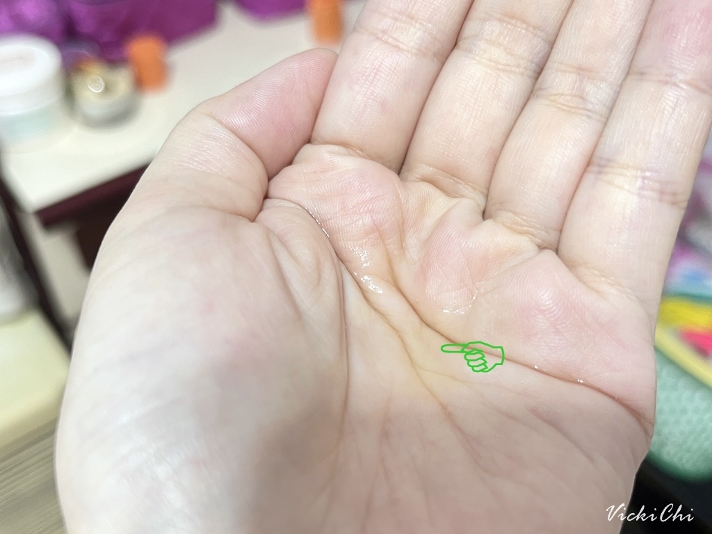 清潔完臉部後,我通常會趁臉上還有些水分,取適量的精華液均勻塗抹於臉及頸部肌膚,按摩吸收後再使用乳液。早上則等精華液吸收後,接著擦防曬乳跟上底妝。維C煥白複合精華的質地非常水,不含香料與酒精。