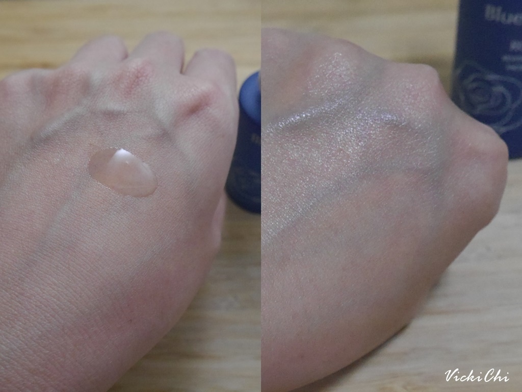 精油露一滴在手背上就聞到玫瑰香氣,有精油的油感但擦起來完全不粘膩,很快就被肌膚吸收。
