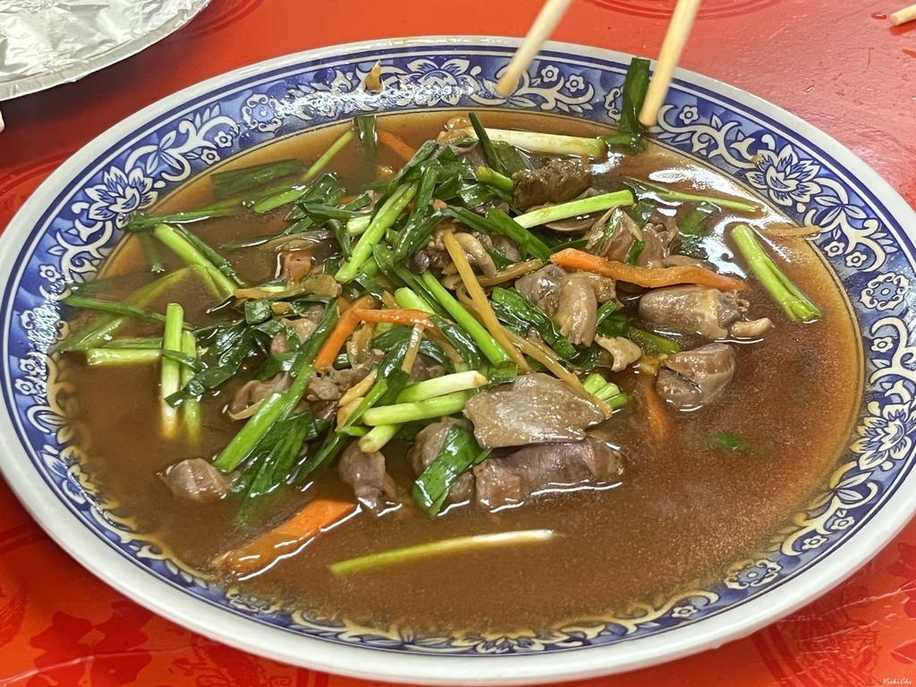 用三杯的方式炒下水,下水就是一些內臟(雞肝、雞胗、雞心),這道菜真的很下飯。