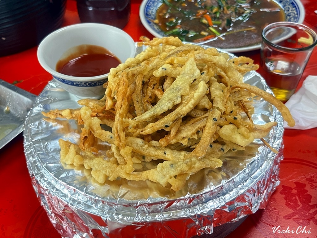 店家的招牌菜是桶仔雞及魚料理,來這裡大家都會點上炸牛蒡作為甜點。