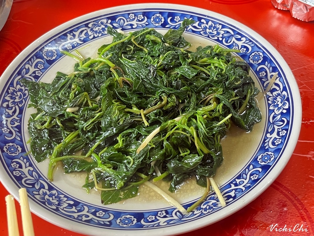 原住民常用的野菜,營養豐富,莖葉都可以吃。店家用薑絲炒野莧,整體味道還不錯,但就有點油。