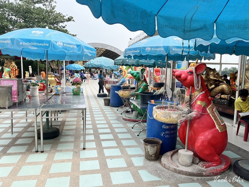 不只象神本尊超吸睛,整個廟區更像是神明界的聯合國,各式來自不同文化的神像齊聚一堂,莊嚴神聖但又添幾分熱鬧的氛圍。來這裡的信徒絡繹不絕,有人誠心祈福、有人虔誠還願,現場氛圍充滿平靜祥和的能量。